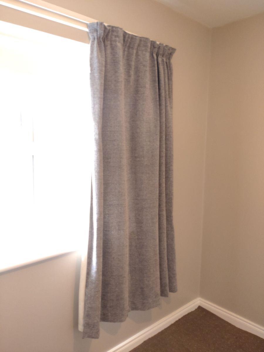 pair matching curtains on white plastic curtain track
